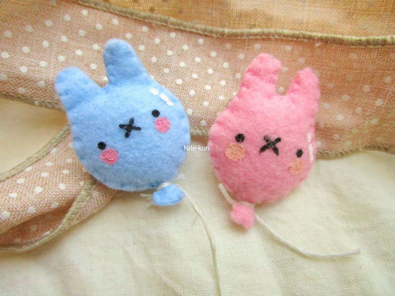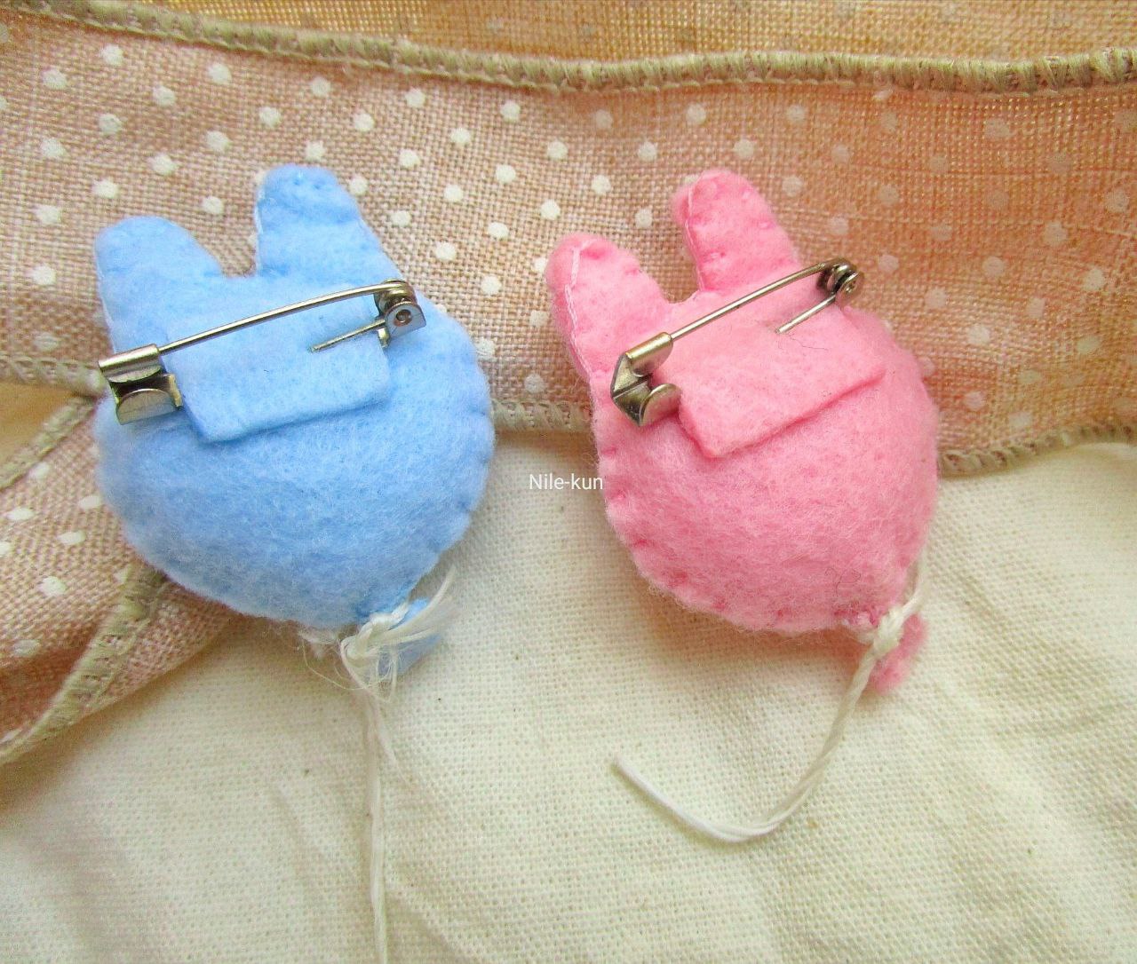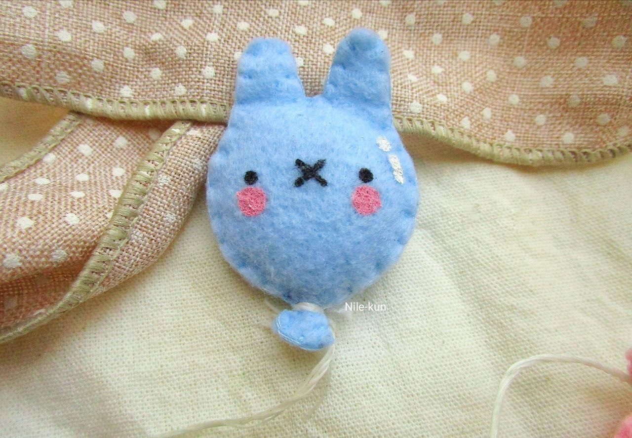 Handmade kawaii bunny balloon brooch, made of felt, handmade